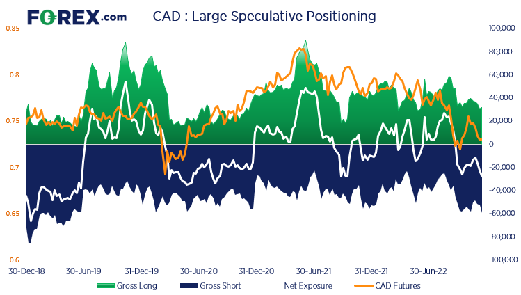- 大型投机者对加元期货的看跌程度为14个月以来最高