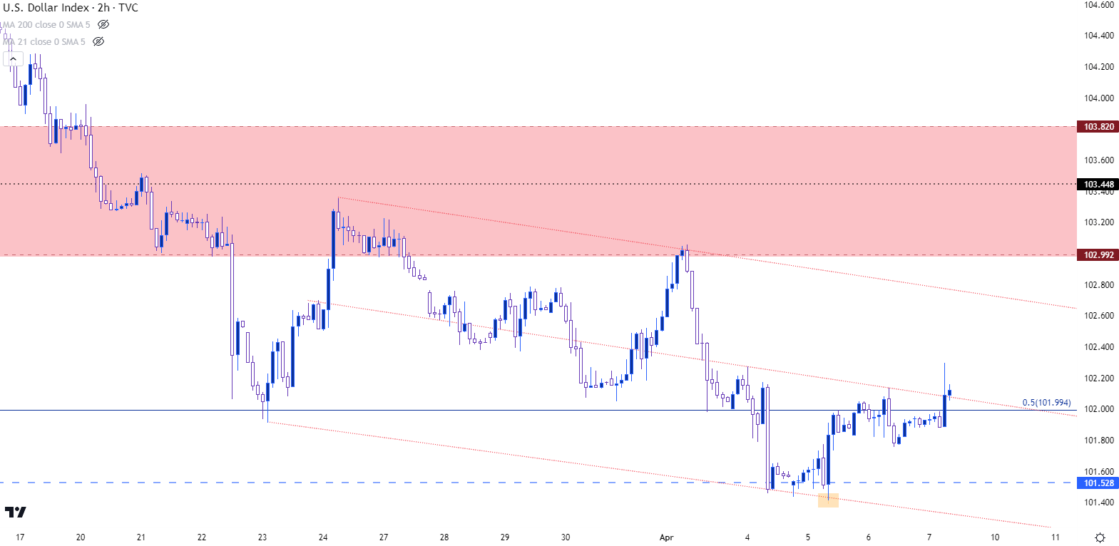 美元--DXY两小时价格图(仅供参考,不在Forex.com平台上提供)