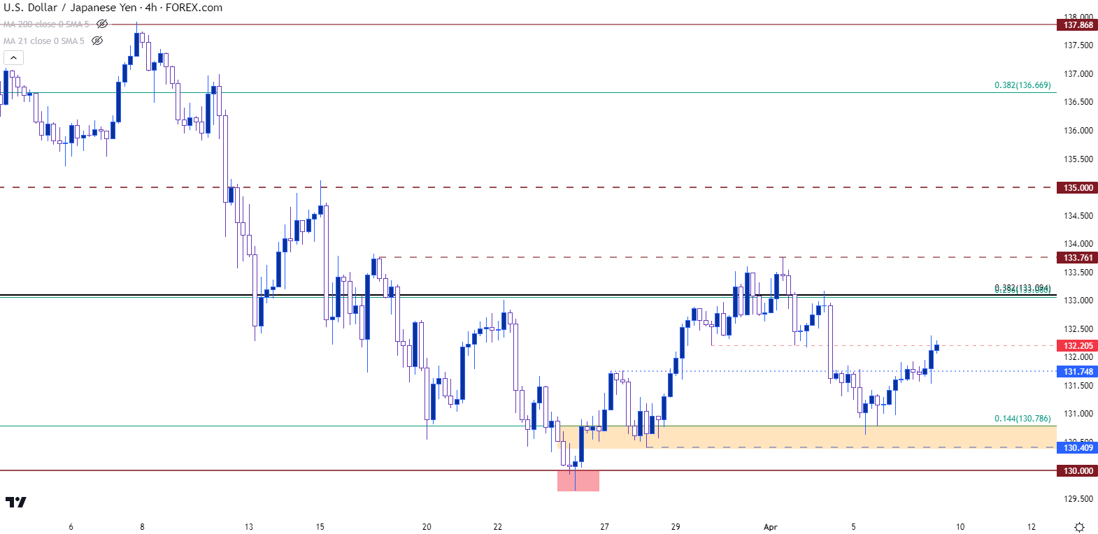 说到更高的低点,斐波那契点位127.27很关键,不过130.00点位在3月下旬就发挥了作用,并带来了超过400点的反弹。133.09区域确实有助于保持日线图上的高点,不过上周在前面提到的区域从130.41到130.79附近再次出现更高的低点。