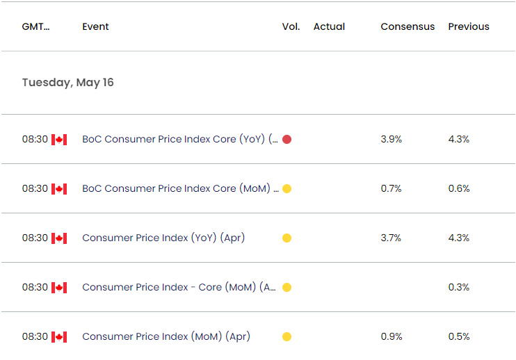加拿大CPI可能对货币政策前景影响不大,因为预计4月份的整体通胀率和核心通胀率都将收窄,消费者价格的进一步放缓可能会使加拿大央行(BoC)保持观望,因为央行“预计今年年中的CPI通胀率将迅速降至3%左右,然后在2024年底前逐渐下降至2%的目标”。