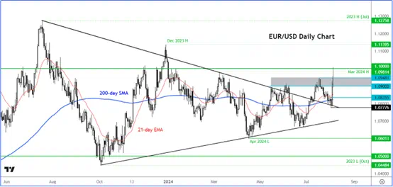 我们看到风险资产在过去几个交易日大幅暴跌,主要是由于套利交易的平仓,在服务业PMI数据在一定程度上缓解了担忧之前,抛售步伐在一夜之间加快。今年上半年风险资产上涨的一大特征涉及我们所说的套利交易。这包括以低利率借钱(例如在日本)并将其投资于高收益资产(例如美国科技股或美国国债)。这种策略在外汇交易中很受欢迎,投资者利用一个国家的低利率和较弱的货币,再投资到回报更高的另一个国家。但现在我们看到的是与之相反的情况,因为日本上周的加息幅度超过了预期,令投资者感到惊讶。与此同时,由于疲软的一系列数据敲响了经济衰退的警钟,从而美国利率预期急剧重新定价,美元失去了部分收益率优势。总的来说,这也有助于欧元/美元,因为此前预期美联储的降息速度将低于欧洲央行,而后者已经开始降息。
