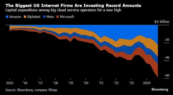 科技四巨头三季度资本支出  来源:Bloomberg