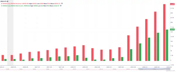 公司第二财季营收300亿美元,同比增长122%;其中数据中心业务营收为263亿美元,同比增长154%,贡献了总收入的87%;当季净利润165.99亿美元,同比增长168%。上述数据全部创历史新高且超出市场预期。